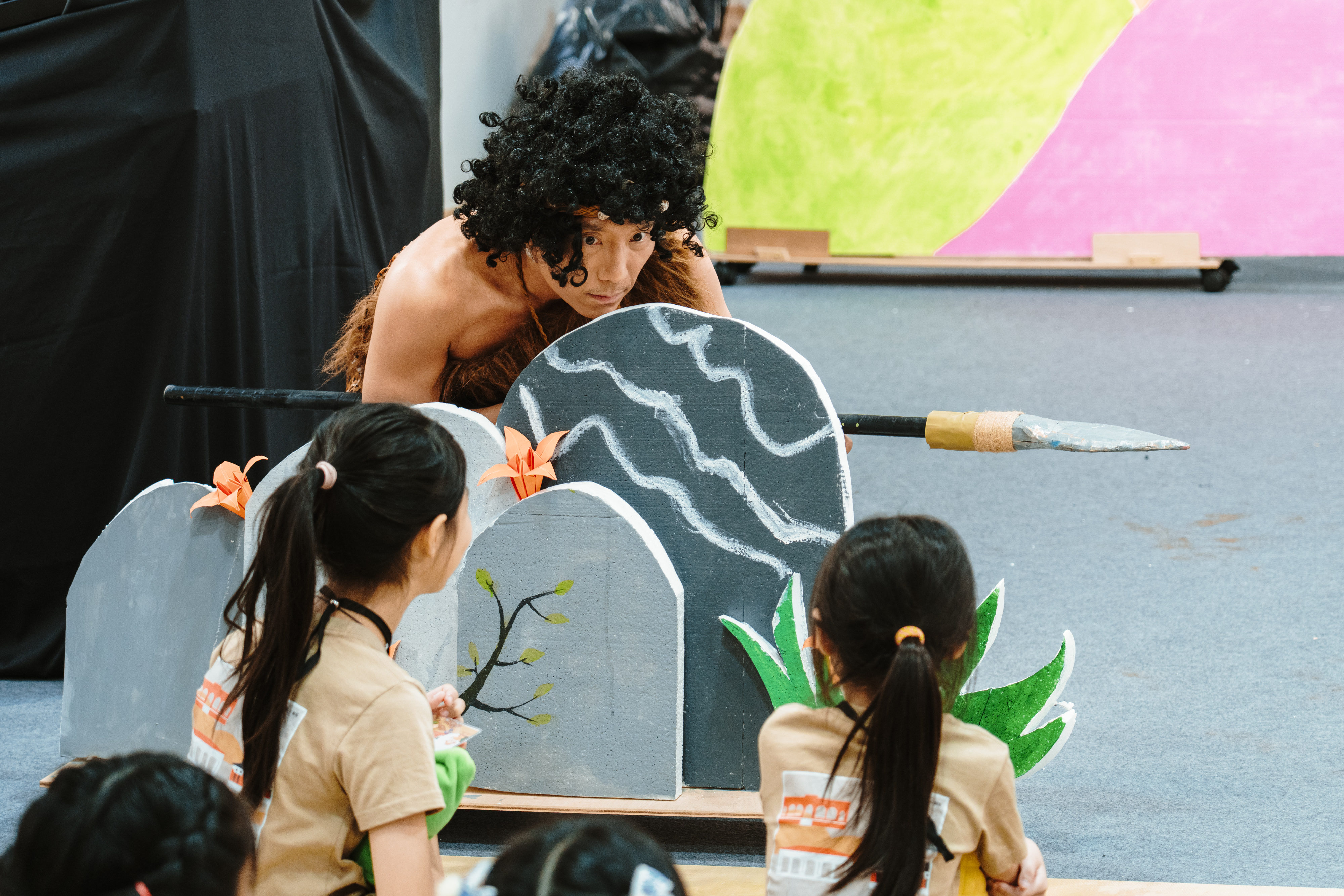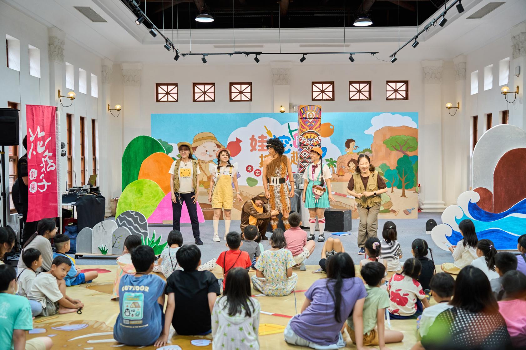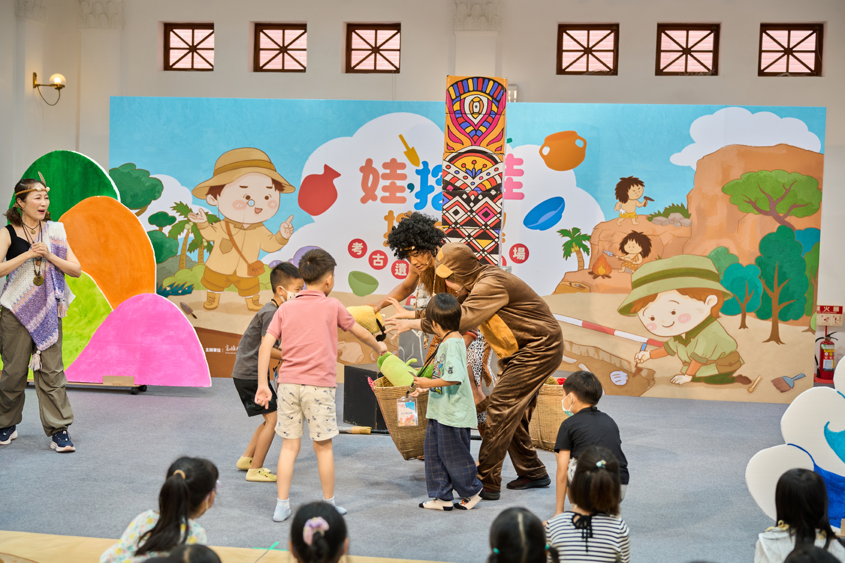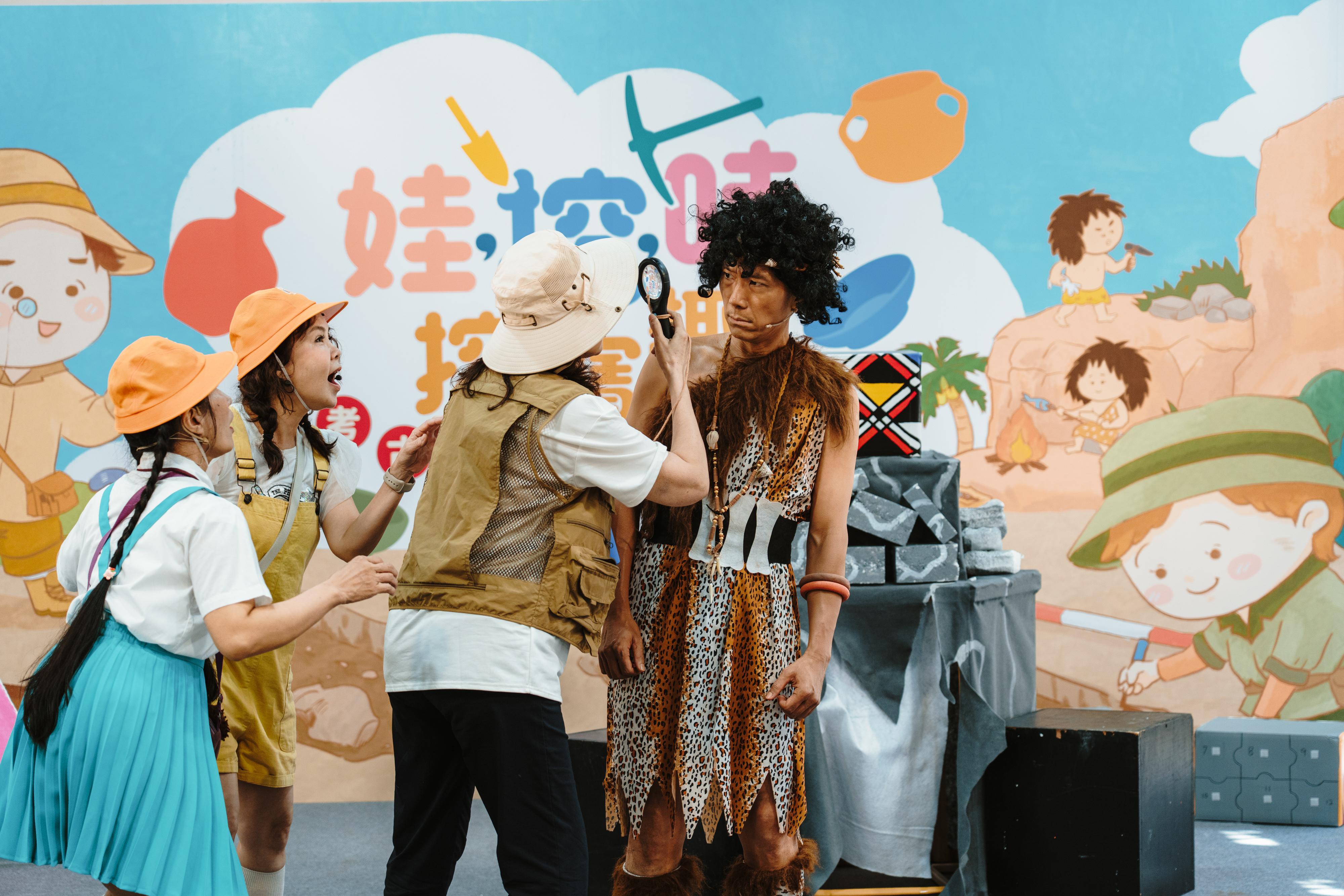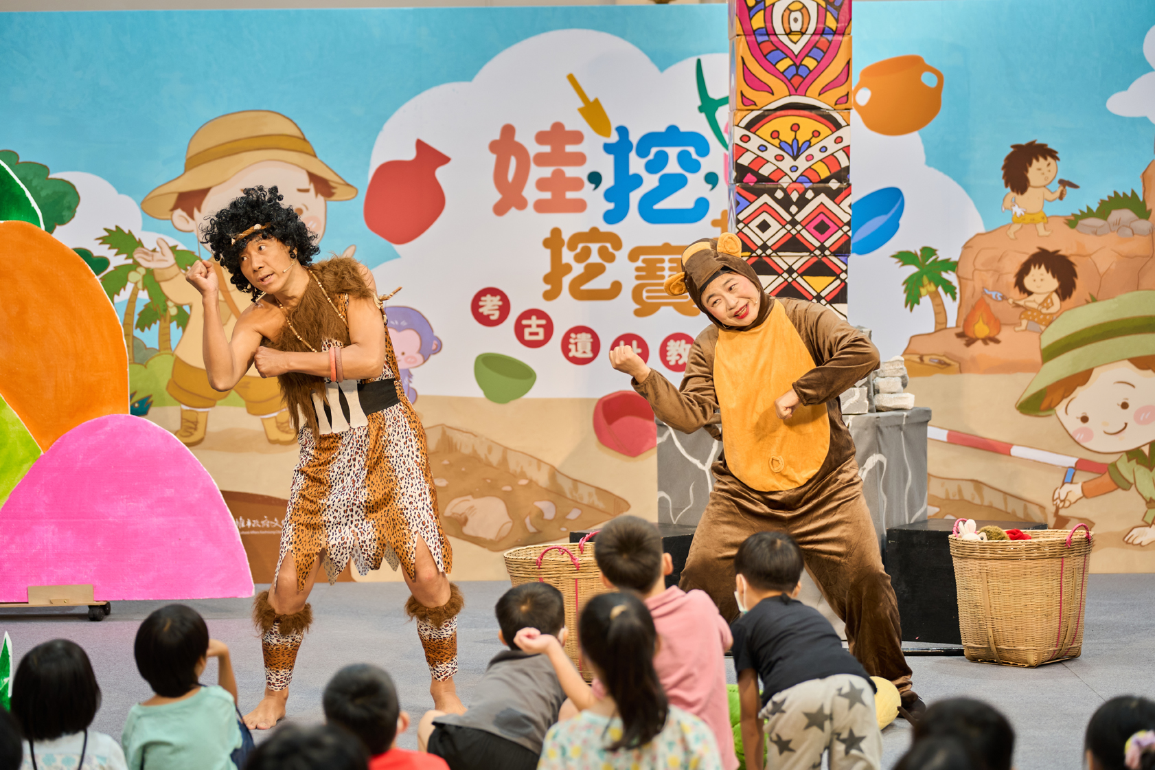 本次劇場以「史前人馬卡的時空冒險」為主題,故事講述史前人馬卡出獵時意外穿越到現代,與現代小新與貝貝展開一段奇妙的相遇。學童們隨著劇情推進,一起解謎、協助原始人尋找回家的圖騰碎片。整場演出充滿笑聲與驚奇,讓參與者在輕鬆互動中理解考古遺址與文化保存的重要性。